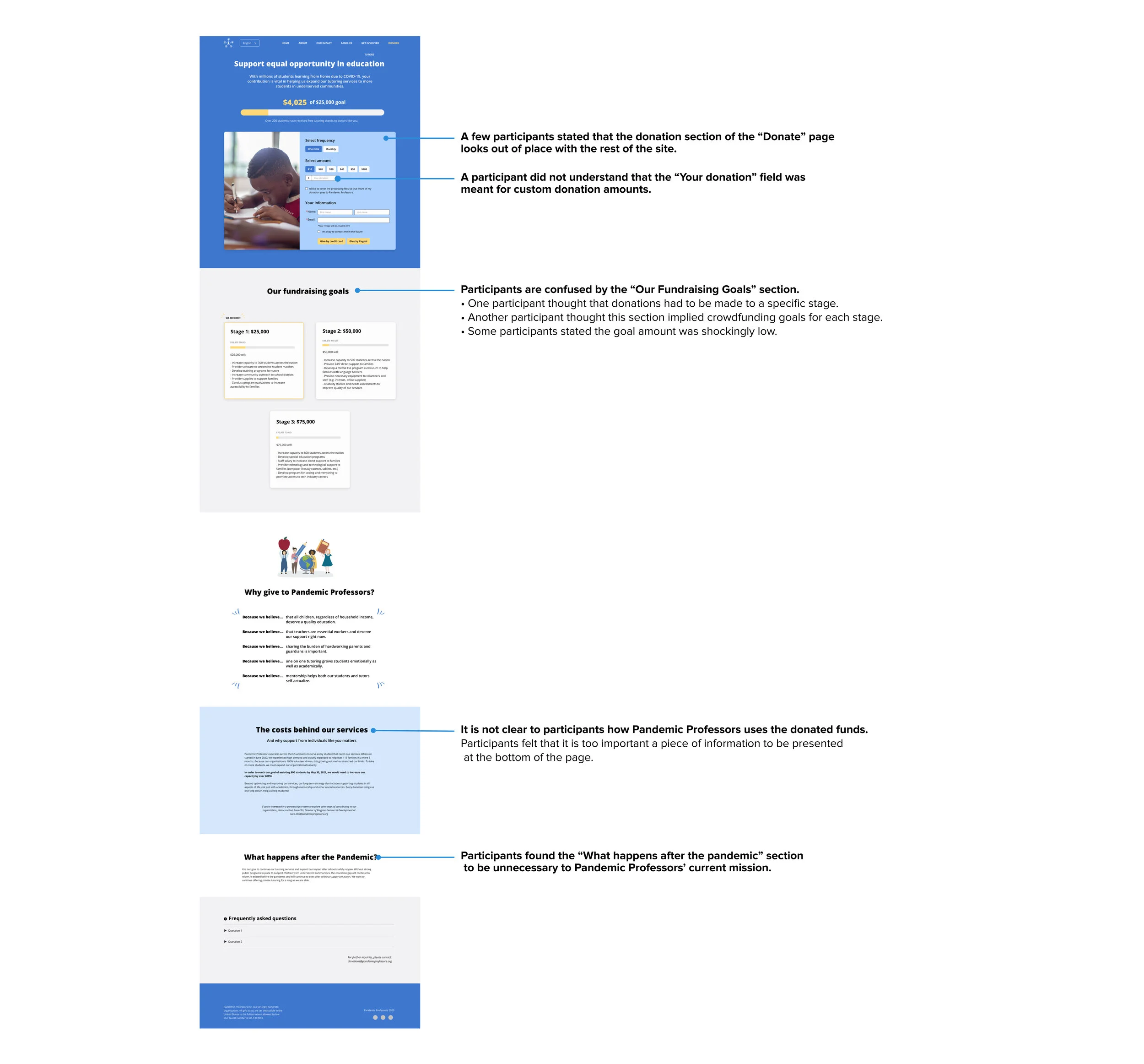 Participants felt that the purpose of the “Donate” page was to allow them to make donations. They disliked the excess information about the use of their donations when navigating that page.